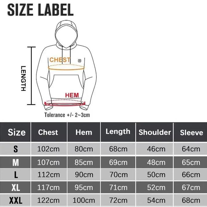 The hoodie features five strategically placed heating zones across the back, chest, and pockets. You can easily adjust the warmth settings to suit your comfort level, ensuring you stay cozy during any activity, from skiing to simple strolls.